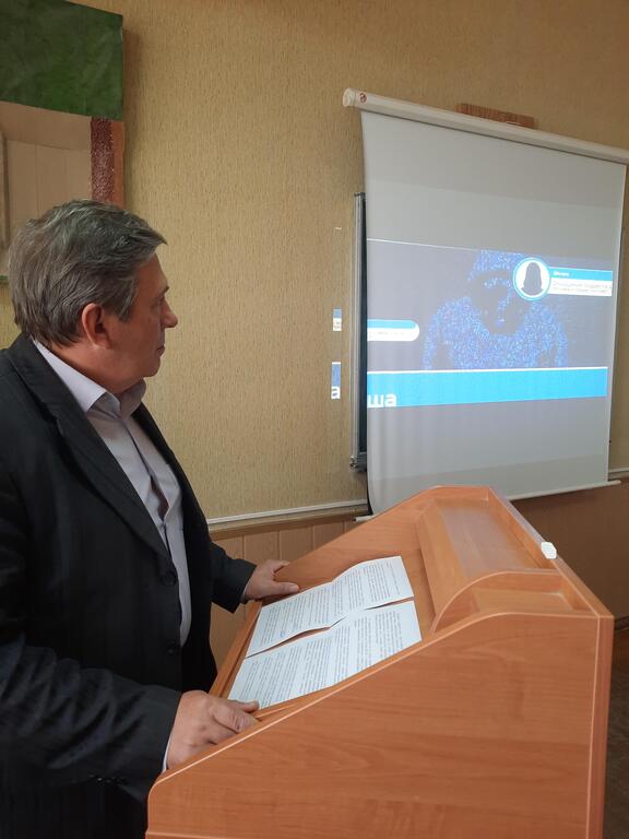 С докладом выступил заместитель заведующего кафедры по воспитательной работе старший преподаватель Лунёв Дмитрий Владимирович. В докладе сделан акцент на мерах защиты от экстремизма и терроризма, кибер-мошейничества. Приведены реальные примеры кибер-мошейничества в республиках Новороссии с представлением видео материала.