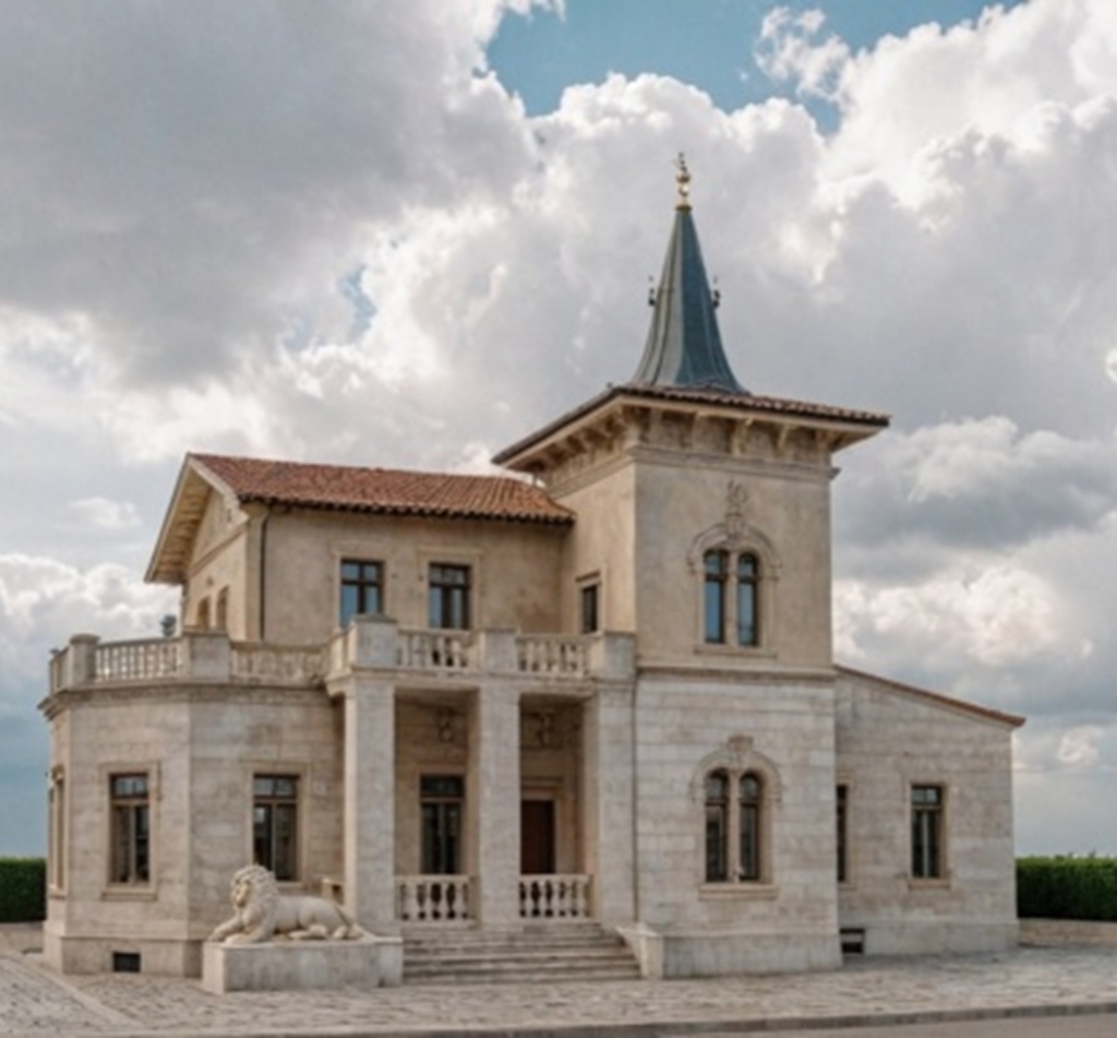 Здание расположено по адресу: г. Симферополь, ул. Потёмкинская, 15. Построено в 1907 году в стиле модерн, оно является ярким примером исторической застройки города. Его архитектурную ценность определяют асимметричная композиция, двухъярусная прямоугольная башня с шатровой крышей, окна-«омеги» и оригинальный декоративный фасад. Историческая значимость особняка подчеркивается ключевым событием: 3 февраля 1945 года здесь останавливался на кратковременный отдых премьер-министр Великобритании Уинстон Черчилль по пути на Ялтинскую конференцию, о чем свидетельствует мемориальная доска на фасаде.