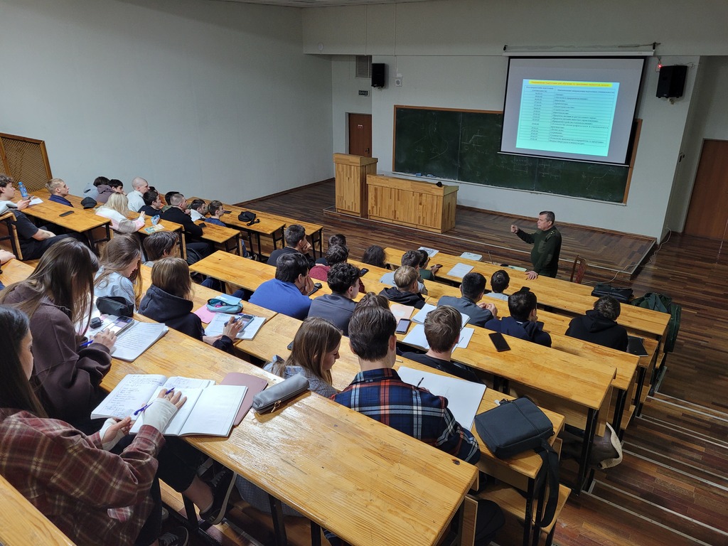Сергей Владимирович также подчёркнул важность соблюдения всех сроков: своевременная подача заявления, получение направления и сдачи итогового комплекта документов — ключ к успешному участию в конкурсе. После основной части первокурсники задали вопросы о нормативных требованиях, воинском звании, присваиваемом по окончании ВУЦ КФУ, и получили практические рекомендации по постановке на воинский учёт и прохождению медкомиссии.
