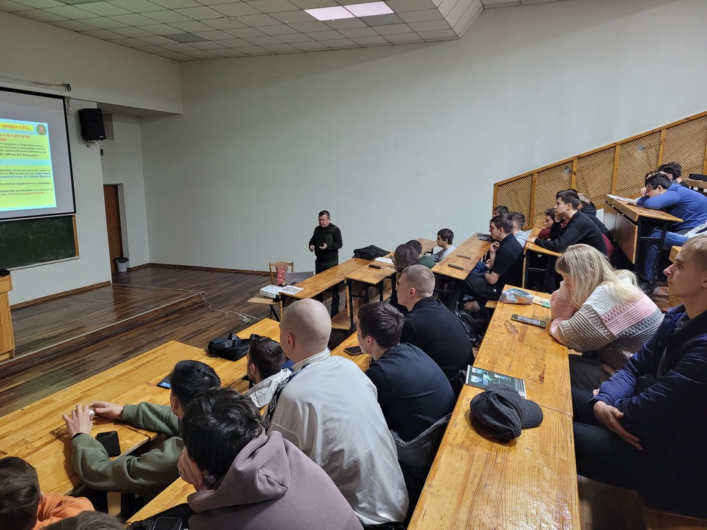 Заместитель начальника ВУЦ КФУ Сергей Владимирович Марченко провёл организационное собрание, на котором подробно рассказал о порядке предварительного и конкурсного отборов, сроках подачи документов и получении направлений в военные комиссариаты. Особое внимание было уделено требованиям по физподготовке, критериям по состоянию здоровья и показателям успеваемости, влияющим на отбор в ВУЦ КФУ.