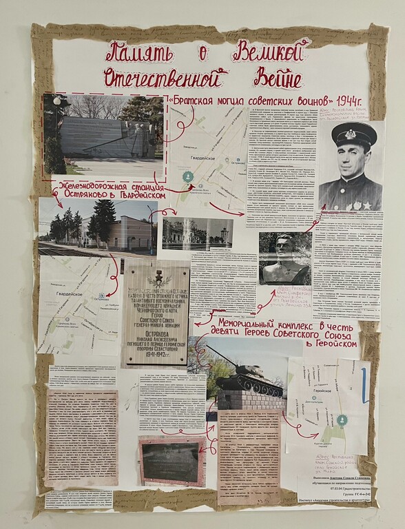 Открытие выставки коллажей на тему «Память о Великой Отечественной войне 1941-1945 гг. в архитектуре и градостроительстве», посвященной 80й годовщине Победы в Великой Отечественной войне 1941-1945 годов состоялась в Институте «Академия строительства и архитектуры» 5 мая.
