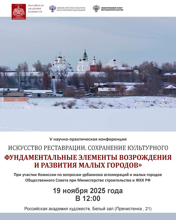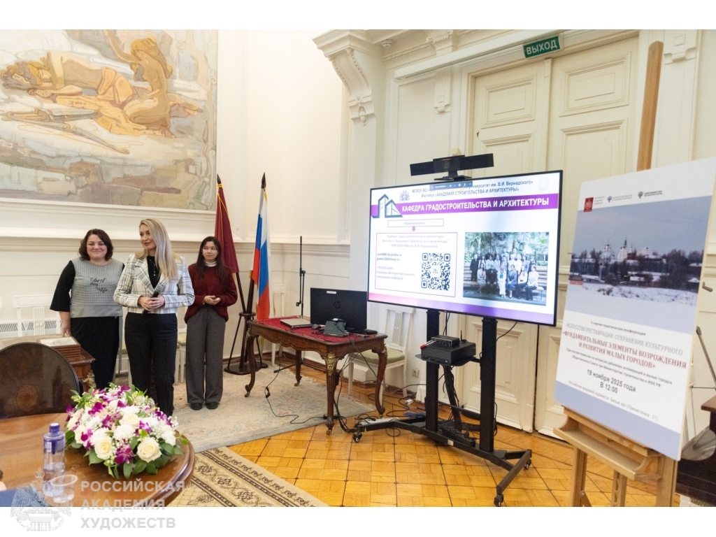 В рамках Проекта Приоритет 2030 КФУ 19 ноября 2025 года рабочая группа кафедры градостроительства и архитектуры Института «Академия строительства и архитектуры» ФГАОУ ВО «КФУ им. В.И.Вернадского» приняла участие в V научно-практической конференции «Искусство реставрации. Сохранение культурного наследия: фундаментальные элементы возрождения и развития малых городов», организованная Отделением архитектуры Российской академии художеств совместно с Комиссией по вопросам урбанизма агломераций и малых городов Общественного Совета при Министерстве строительства и ЖКХ РФ.