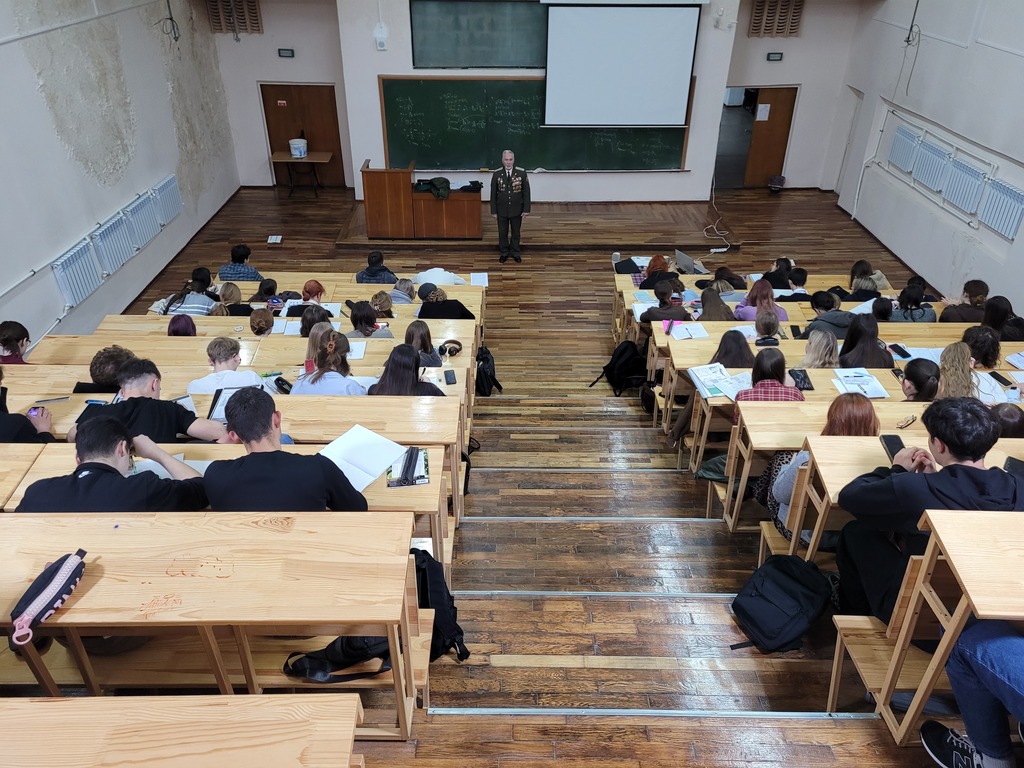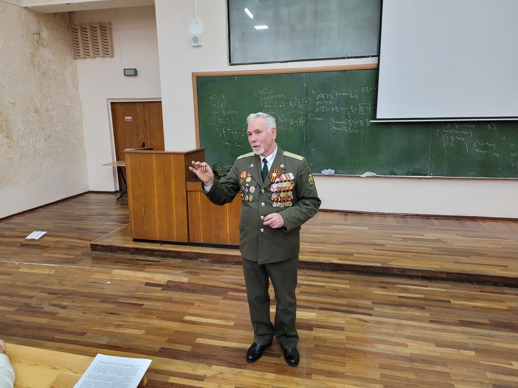 В преддверии важной даты – Дня Героев Отечества, который ежегодно отмечается 9 декабря, в нашей Академии состоялась встреча со студентами. Гостем мероприятия стал Евгений Александрович Кануев – ветеран военной службы, член Совета ветеранской организации пограничников города Симферополь, полномочный представитель фонда поддержки Президентских программ, член Президиума Симферопольского Союза ветеранов и председатель Территориальной организации Ветеранов города Симферополь.