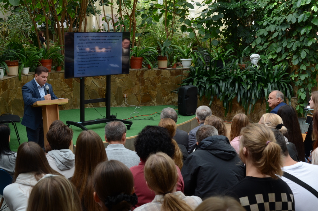 В начале мероприятия выступил с приветственным словом директор Академии Эльмар Меджидович Меннанов. О направлениях подготовки и условиях поступления на эти направления рассказал заместитель директора по учебной и методической работе Александр Сергеевич Бахтин. О проводимых и планируемых мероприятиях, в которых могут участвовать студенты Академии рассказал заместитель директора по молодёжной политике и воспитательной работе Акимов Сейран Февзиевич. Далее с приветственным словом выступили заведующие кафедрами и представители от кафедр Академии.